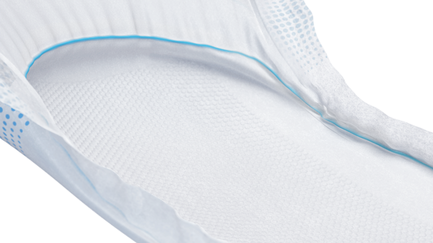 FeelDry technology rapidly wicks away even large volumes of urine into the product core. The urine remains locked in the core even under pressure, keeping it away from the skin, for enhanced comfort.
